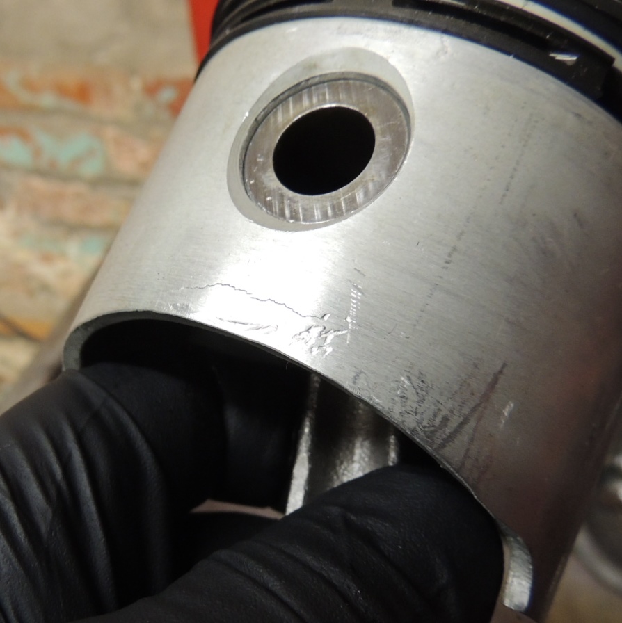 Reusing a cracked piston should not be a consideration. If and when the skirt lets go it can cause a bunch of expensive and/or catastrophic damage. $200.00 is an easy problem to take of if you have to. |