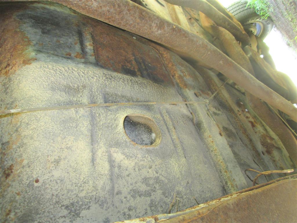 The body on this El Camino still wears its original paint. Being a California car, the undercarrage is quite clean with expected surface corrosion. The car originally came with a black vinyl top which caused rust in the roof as shown. The roof will need replacement. The floors also suffered scattered rust from the water intrusion through the roof. The driver's side fender is a replacement original GM fender from another SS454 El Camino. Being the original paint, there are no sins hiding under a past paint job. You can see exactly what you are getting.