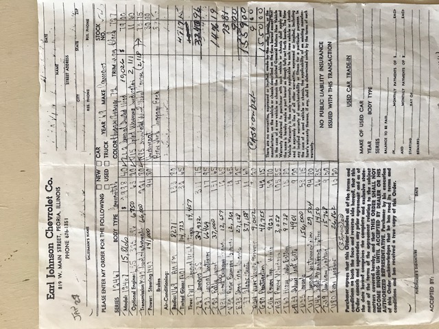 I owned this car several years ago and I am buying it back. I bought it from the second owner who bought it in 1970 so I know the car well. That is the invoice from when he bought it used at Johnson. The original owner bought it new at Johnson and traded it back in 1970.
