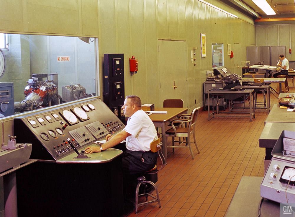 Very cool pic, trans is a PG also quite the induction setup. Note the second window w/ dyno console further along the wall before the guy @ the drafting table using a slide-rule also Chevy food and napkins to the right. ![]() ~ Pete .