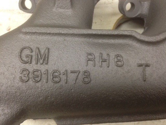 Here is a Big Block RH 3916178 exhaust manifold with a J 15 9 date. It is in very nice condition with good threads and no cracks. It was painted when I bought it so I have no idea what kind of paint was used.