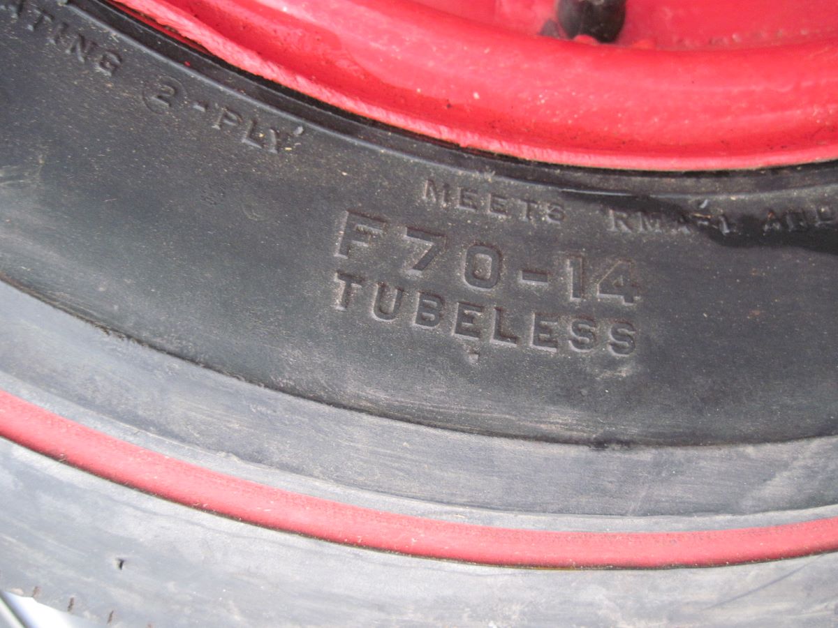 ----Rusty,,, I don't know a thing about the dating stuff. With that said, this tire appears to be much earlier tire as the red stripe is way closer to the tread edge than later F-70's. I remember vividly the Firestone's that came on my 67 SS Chevelle and this tire looks very similar. Firestone had problems with these vintage tires as they would crack and split around the edge of the stripe possibly because that area flexed more than a stripe closer to the bead. I had several friends that also had the same problems. These early Stones are very hard to find because of this. There's a chance that I'm wrong of course, but I don't think so.