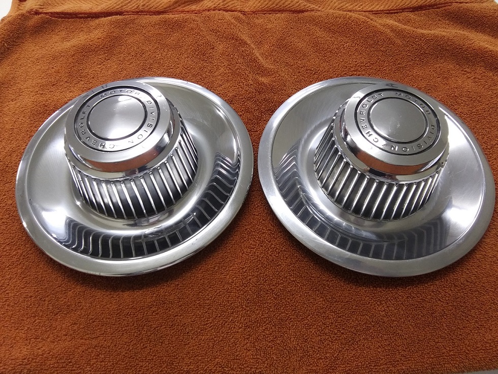 2 xb k18 rally wheels ive owned 20 years.appear to be original paint but need restored.included 1 very nice 4 clip trim ring,has 1 pictured small ding,about the size of a center punch/and 2 derby caps. 1968-1969 chevelle w/disc brakes $185 plus shipping