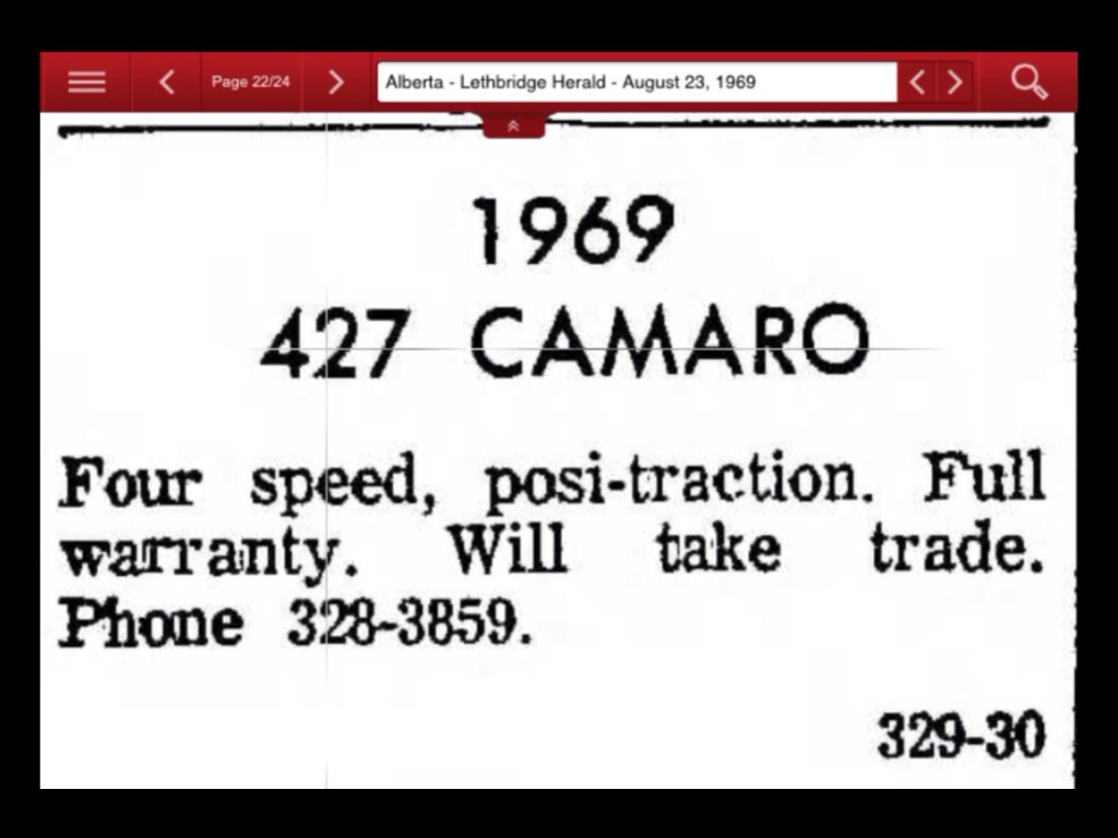 I see the 635276 VIN on a list w/ 9561BA + 72 Paint + 711 but know nothing of what may be original of any car existing today? I also have a handful of old Edmonton Newspaper ads saved for what may be the same car being sold a few times used from 1970-74 w/ different Phone #'s that may help if anyone wants to try backtracking. Here's an ad from the July 20/71 Edmonton Journal, sure sounds like an L72 M40 car? ![]() ![]() ~ Pete .