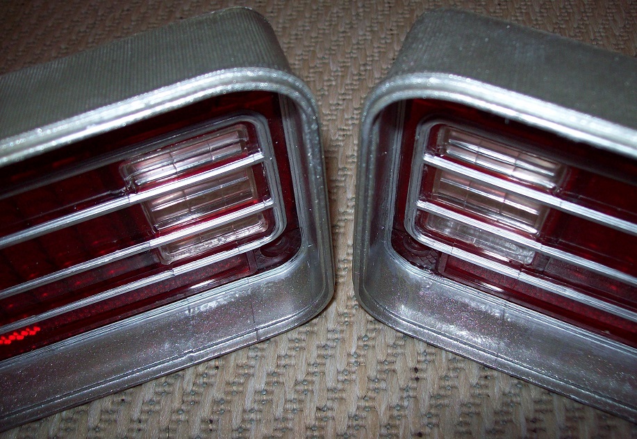 Restored to a concourse level by me with a few hours of labour are this pair of Early Tail light lenses with the Reverse center FLAT lenses. Also came on every Oshawa built 1970 Chevelle as this plant did not change over to the bubbled center lens later in the year like all the USA plants did. No cracks or repairs on these lenses. $400 USD plus $12 Shipping, Paypal "Friends