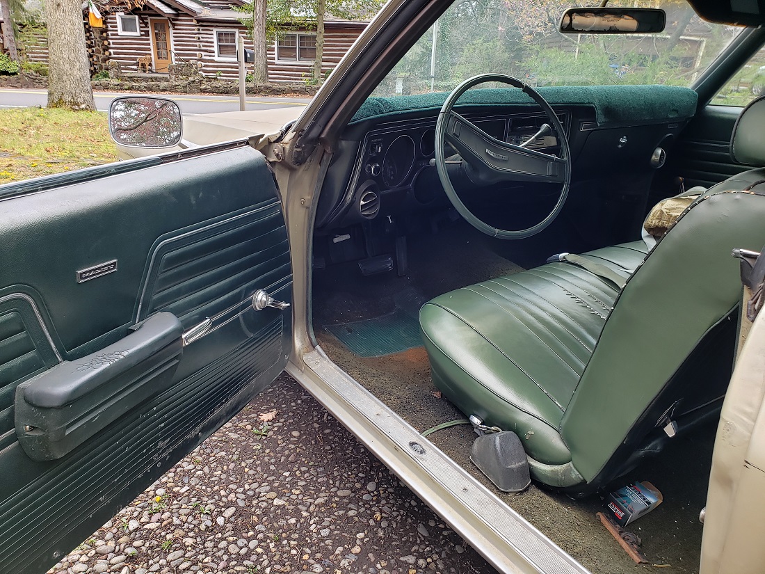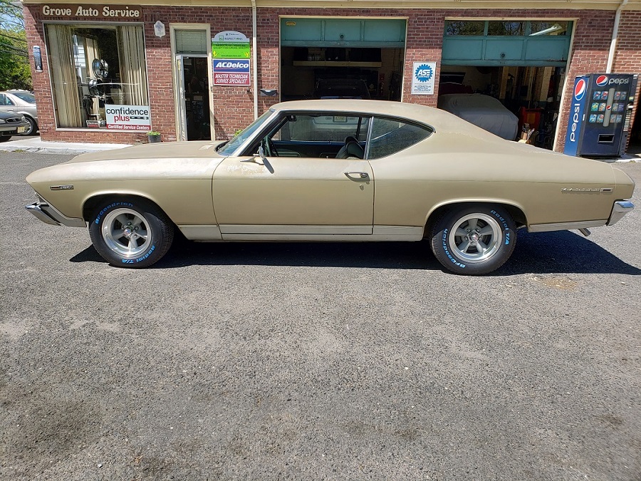Read entire ad please before asking any questions. This is a California original car. I had been looking for several years for a clean 69 Chevelle in NJ but they were ALL too rusty. So I looked to the west coast. It was built in Freemont and was in CA until I had shipped to New Jersey a year ago January. I still have the black plates for it. 307 v8 now with 4 barrel quadrujet Th350 transmission column shift 10 bolt rear ratio unknown. I do have a 12 bolt rear for it available, not available separately. Air conditioned car (that works and blows cold with R12) Power steering This is a factory champagne with dark green gut car…yes I am serious. Car wears it’s original paint but it is very sunbaked, and somebody at one time clear coated it which is also baked. The interior has been redone under my ownership to include rear package tray, headliner, visors, carpet, dash pad in correct green, and front and rear seat covers. The foams were not replaced because they were actually in perfect condition, so they are not overstuffed. It is a bench seat car. PLEASE NOTE interior picture is BEFORE. The car was power drum, which I converted to power disc front (oem style) and replaced the rear drum brakes completely. Installed new factory dual exhaust with SS tips. Replaced all rad hoses and heater hoses with reproduction hoses, and correct clamps. Replaced plug wires with reproduction wires. Installed pertronix distributor I do have an oem style am/fm radio and speaks that go with the car. There is a small rust spot in the lower rear window channel, literally the size of a pencil. That is the only rust on the car. Yes I am for real, that is why I shipped it from CA. The car is very VERY straight. The exception is the passenger front fender which has both a crease and a wack on the eyebrow. The damaged fender is still on the car. I have a NOS 69 Chevelle fender included in the sale. Also included, and original 69 SS hood with trim (grills) 69 Malibu grill NOS 69 left and right hockey stick trim NOS Set of 4 very clean headlight bezels Reproduction front and rear bumpers in show chrome Clean pair of rear tail light lenses to replace the sunburnt ones on the car. If you think you need to tear this car down to make perfect, this is NOT the car for you. It has survived over 50 years without somebody messing it up, and should remain as such. Entry level muscle car. This is an original car that has not been restored or refurbished. It has been made driveable and safe. This car runs very VERY well. This car is NOT perfect, who is at over 50 years old. Please do not tell me what you think it needs, especially from a few photographs. This car is complete to nearly 100%, because I am sure something tiny thing may be missing, I am not trying to mislead anyone. Cash only Clear NJ title in my name, in my hand. I will not help carrier load the car. I have had several horrible experiences with carriers, including one that was life threatening. If you arrive with your trailer for pick up, I can help some, but being an old fat guy, I can’t work miracles. Car is located at a remote location, so I cannot supply 50 million picture requests, but the pictures in the ad are of the actual car and are an accurate representation of the overall condition of the vehicle. I do not need help selling. I am not interested in trades, just cash. I am thinning the herd to 1 car. I am not a chatty person, so my conversations are direct and to the point of sale this car. I do not negotiate unless in person and you have a lump of cash with you. Car is located in Medford Lakes NJ zip code 08055 Between exit 4 and 5 on the NJ turnpike. 20 miles east of Philadelphia Near Atco Dragway My cell number for calls, no texts, is 609-605-5368 m-f 5pm to 9pm sat and Sunday 9am to 9pm…yes I am an old guy. My name is Chris. Thank you very much for looking. Price is 19500.00