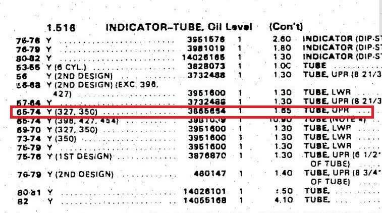|  NOS 3865664 1965 to 1974 Corvette 327 350 Small Block Dip Stick Tube