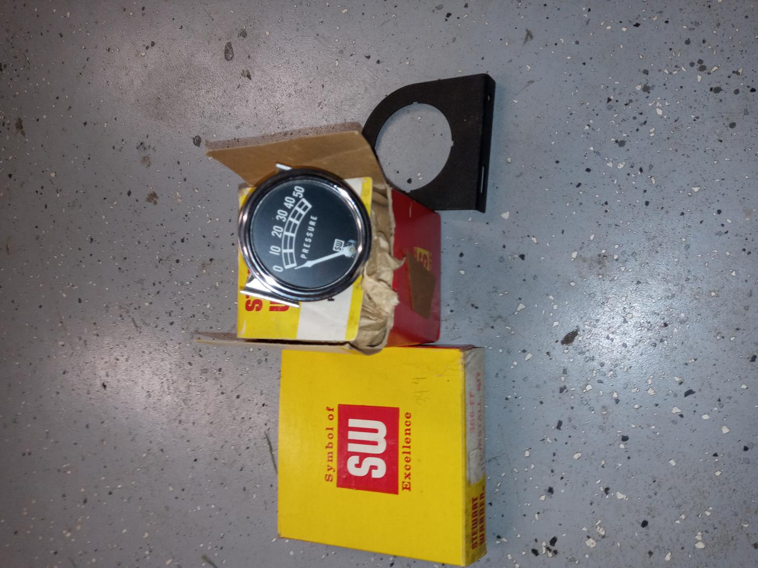 Nos S&W oil pressure gage has the bracket line hook up it's 21/4 face $80