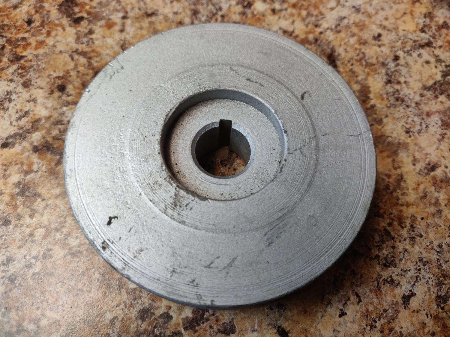 https://www.heartbeatcitycamaro.com/...GM%23-3829287/ The later 68-72 pulley I believe is 3.2" in diameter with no keyway slot. I think someone machined the face to remove the numbers.