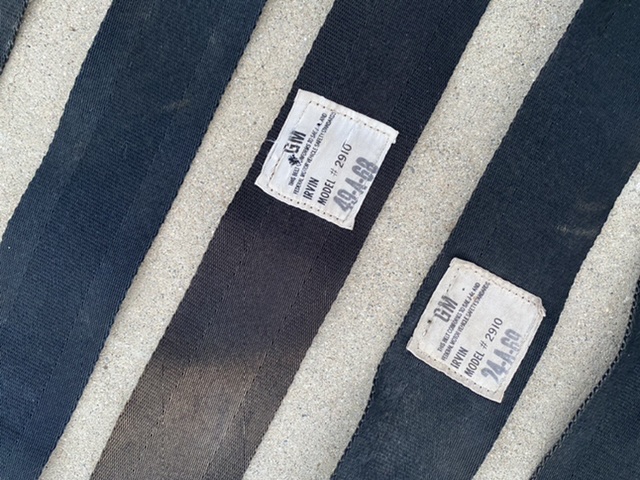 2 - 2904 Retractors 2 - 2904 Buckles 4 - 2950 Shoulder Harness 2 - 2910 Male 2 - 2910 Buckles Complete set of 1969 Camaro BLUE seat belts: SOLD I purchased these belts to complete the set on my car. I ended up only using the date code tags off of the blue set so that my set in my car have matching tags. I had the Mrs. sew on what was left of the tags on my set of belts to the blue set. I used what was needed from the black set to complete a nice set for my car. Additional pictures upon request. 150 for the black set. Shipping available at purchasers expense. Last edited by Gonzo1717; 04-03-2022 at 12:52 AM. Reason: Price change |