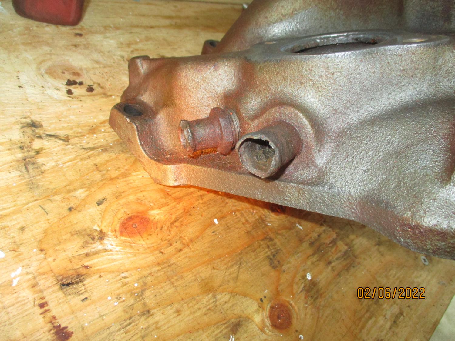 Your going to need a torch to get that of out....did you or Gino damage this one trying to get it out? It’s been in there for 50 plus years.....it still may be ok.....to use, looks like there is still enough meat to the nipple fitting. Just replace the threaded one. Dan