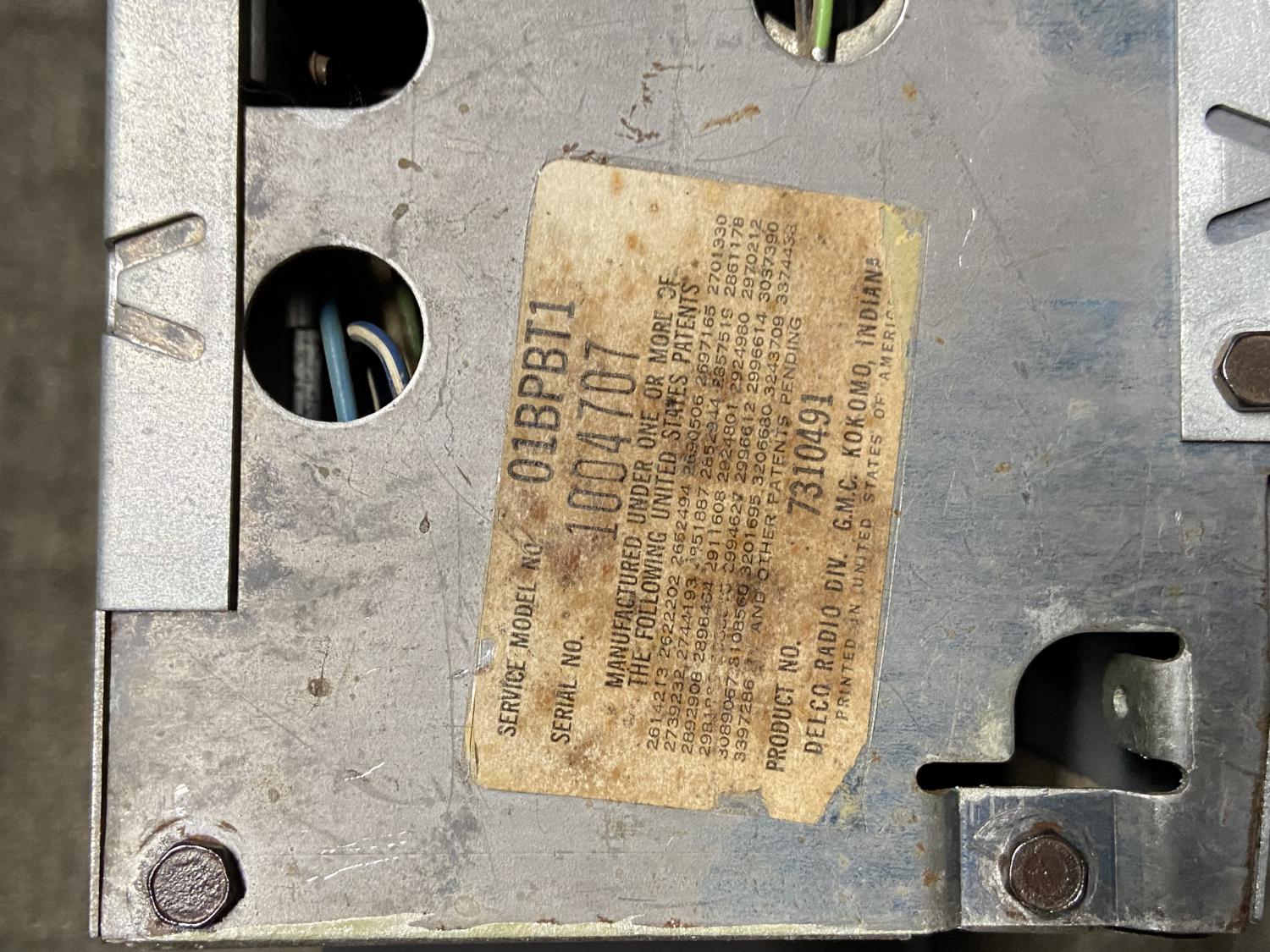 AM band works. All 3 internal bulbs tested and work. Stereo light works. Tape player works (played a little of my old Steve Miller tape). Manual track changer works. Balance and tone controls work. Presets and manual tuner work. Clean clear lens. Nice clean working radio. See pics for details. Model 01BPBT1. Part number 7310491. Serial number 1004707. Side diodes dated (6930-30th week of 1969). Includes knobs as shown.