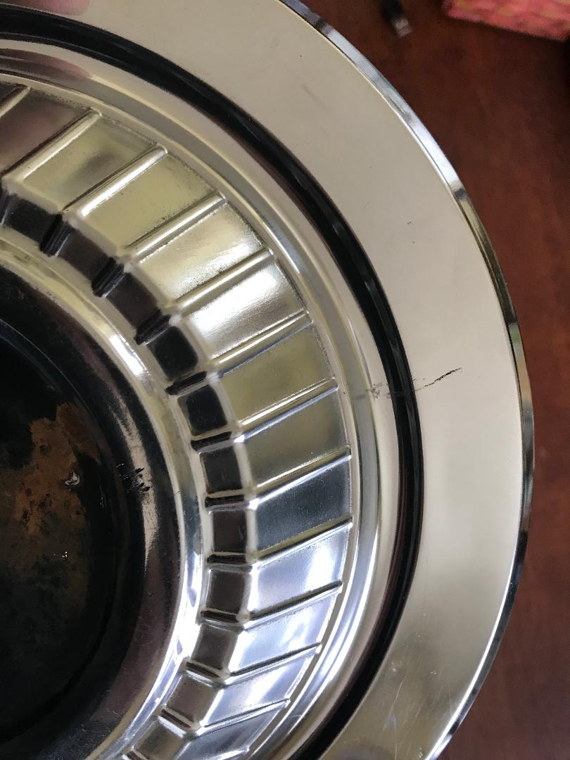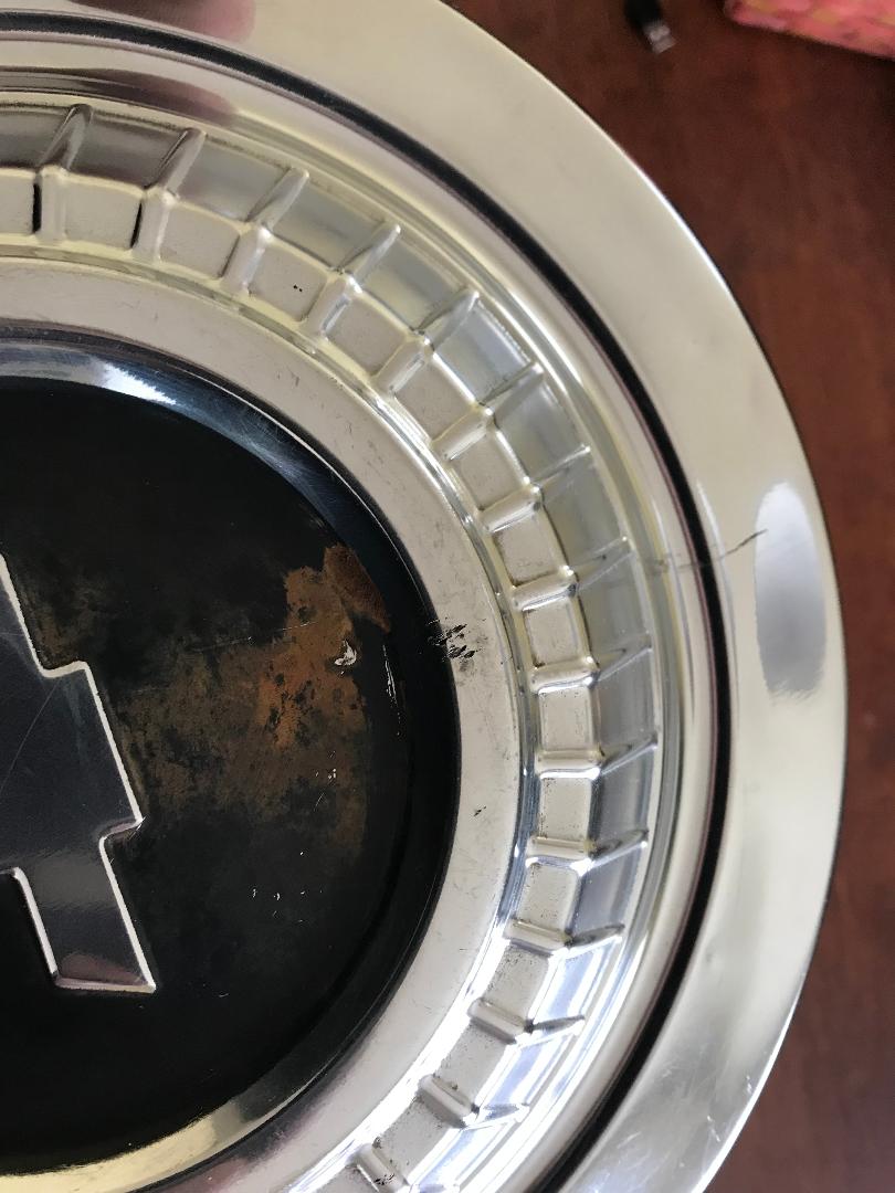 I have a single 66-68 chevy hub cap. It would be a great candidate for restoration or maybe as a driver. it has some some slight dings and few scratches (please see pics) the center portion is nice and not crushed or has curb rash(photos of the center portion show worse than what it really is). Either way they are getting difficult to come by. $30. plus the ride, I can get it into a large USPS flat rate box at $21.50 to the lower 48 states. Payment through paypal friends and family please.