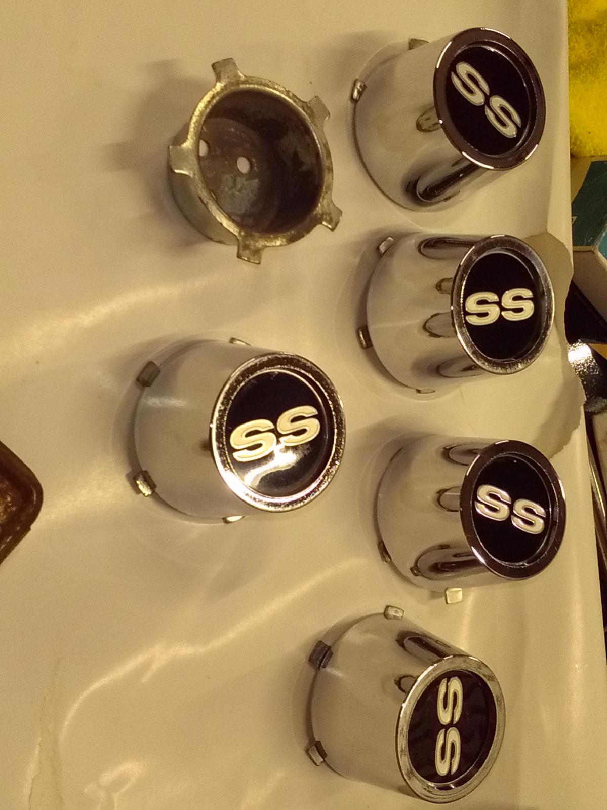 69 & newer SS wheel center caps. 5 pcs 1 appears lightly used.