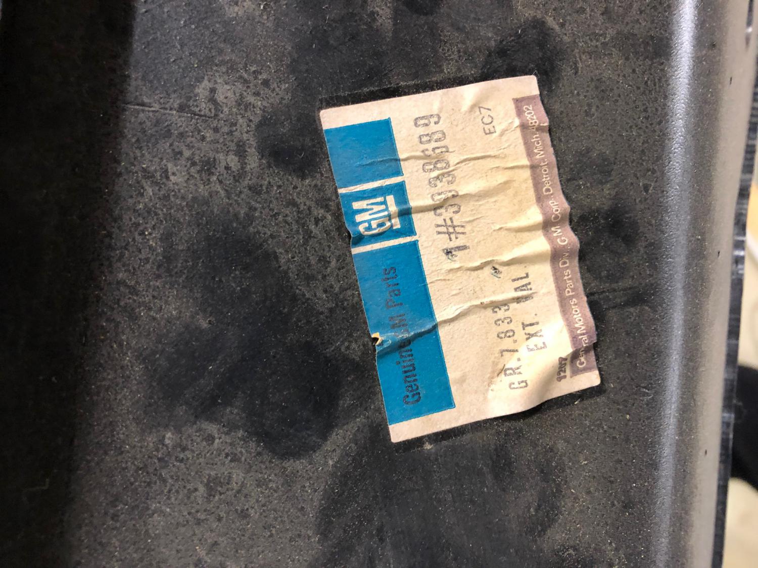 Part number is 3938689. It may have a GM sticker on the back or yellow ink stamp. Possibly even molded into the spoiler. I would imagine the assembly line units were unmarked. 1967 and 1968 units used a different part number.