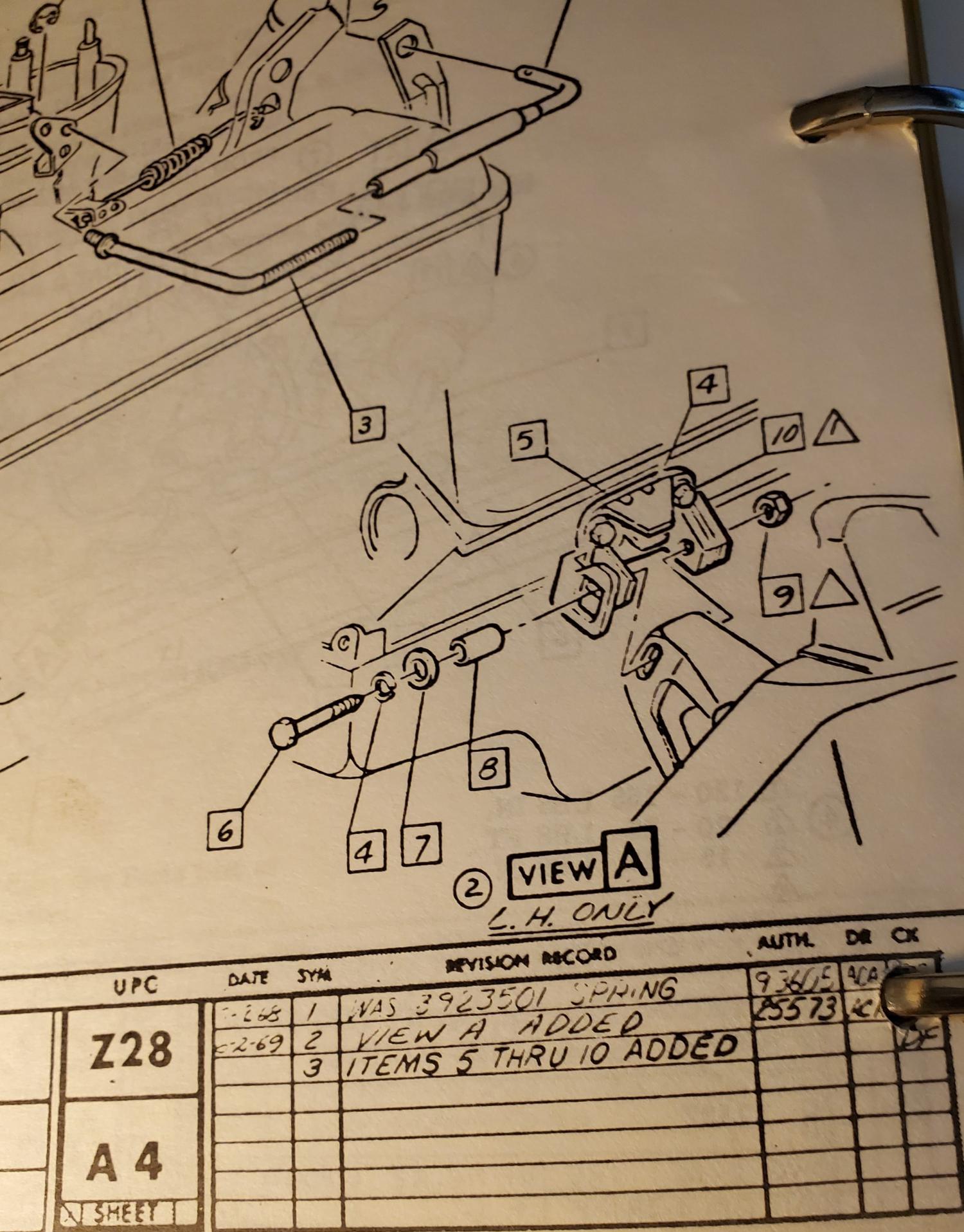 That bracket is on upc Z28, sheet A4 in the AIM. It looks like it was drawn 8/2/1969. My 8/28/1969 had that same system even though it's a 396. Mounting bolts to the block are a thread or so longer on the driver side...Joe