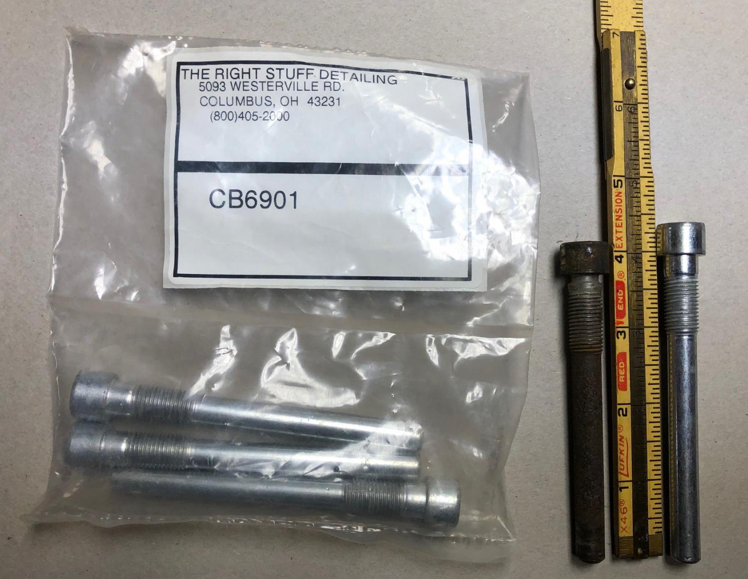 I have been working on restoring my original brake system components and am at the front calipers now. I have restored/rebuilt one and was testing the caliper slide pins (pad retaining rod) and found an issue. I replaced the little O-rings and the pin does not go through the outside O-ring. I purchased Right stuff pins CB6901 a long time ago and thought these were not the correct part. I looked it up on Right stuff website: https://rpui.com/-Repair-Parts-1969-...in-Each-CB6901 and sure enough this part is only listed for GM-A body cars. And web page says it does not fit a 1969 Camaro. ![]() So I pulled out one of my originals and though they are the same diameter, the length and thread area is a little different. Original is 4 1/8" long, while new pin is 4 3/8" long. So then I looked at Heartbeat and their pin (rod) looks the same as the Right Stuff pin, but the description says it fits all GM single bore calipers including 69 Camaros: https://www.heartbeatcitycamaro.com/...Rod-Bolt-Each/ When I do a Google image search all the pins I see are this longer style and most say it fits all the GM models. So will this longer pin work properly in 69 Camaros? Or is there a more accurate pin that matches the 69 version? And how free are the calipers supposed to slide on the pins? I think I need to grease them. I have found only 3 original pins, so I have to dig more and see if I can find more and see if any are restorable. thx
