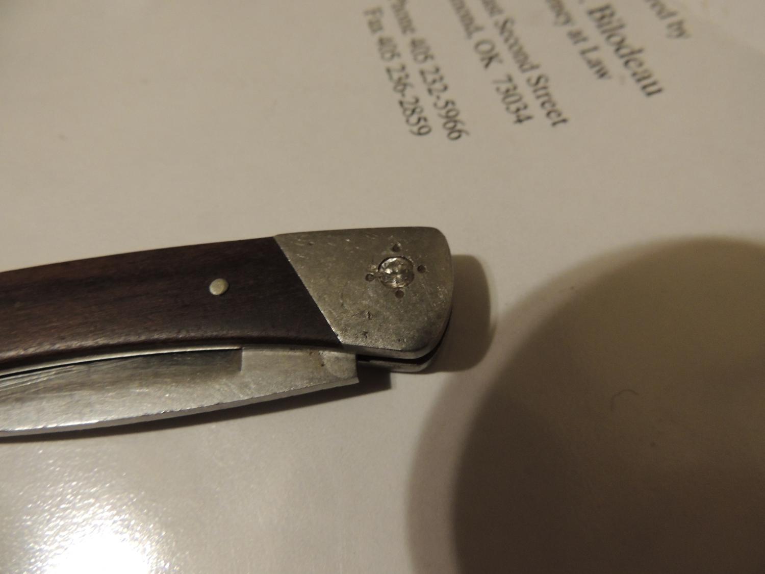 In the same lot of stuff I acquired the oddball Craftsman ratchet, there were a couple of nice little pocket knives with locking blades; one is a Gerber, the other a Buck 503 Prince with Rosewood. The Buck knife has (or had.... two fell out) stones that look like diamonds imbedded into the metal ends. I cannot find anything like this on the web. You can see where little holes were drilled, stones inserted and then four stake marks to set the stone. Have a hard time believing someone would do that with real diamonds. One off?