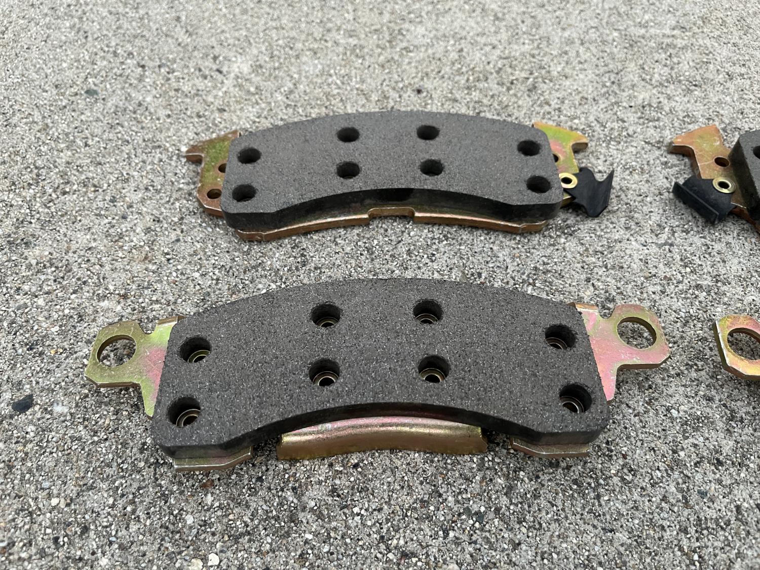 I have the below pictured set of new old stock after market brake pads that look like the originals, i.e. organic / semi metallic pads and gold iridite backing plate with no shims and a wear indicator. The "next best thing" appearance-wise anyway, to NOS Delco IMHO. Better than the currently available black backed and glued / bonded pads. See photos please. These pads also fit nearly every early GM single piston caliper of this era - lots of applications of course. This is a set of four pads as shown, enough for two calipers / one car. Also see my other ad for the original rebuilt 69 Camaro only calipers - 5463633 633 - 67 - 74 Nova too. I may have some cores listed / available too. Chevelle too. Thanks sYc, Anthony |