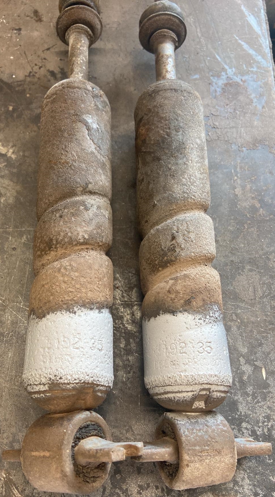 -Matched pair of front shocks Delco USA 3192135 dated 012 70 (January 12 1970) this pair is pitted but will come out nicer once restored, selling as a core pair for $1250 plus $18 shipping