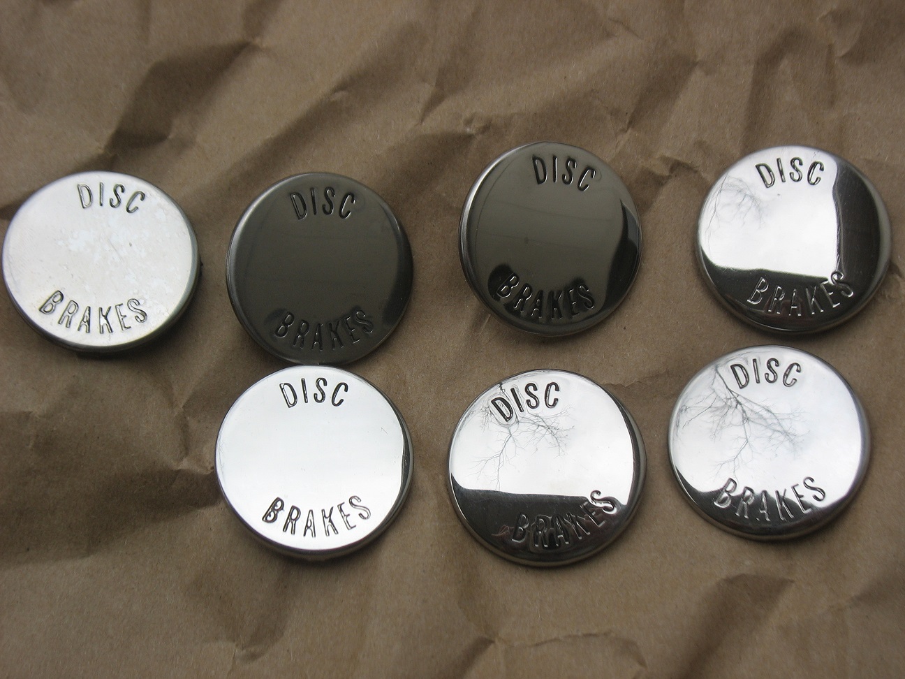 EDIT/ADD: 5 sold...2 left. Thank you. These are original (not reproduction) "DISC BRAKES" GM brake pedal pad inserts. >No nicks, gouges, dings, etc >Cleaned, wet sanded and polished to a high shine finish >Have the two bendable mounting tabs on the back...all intact, etc >You could apply some black paint inside the lettering for a finishing touch....not sure if they had that originally or not. $25 each + shipping. Pay by check, MO or PayPal FRIENDS AND FAMILY