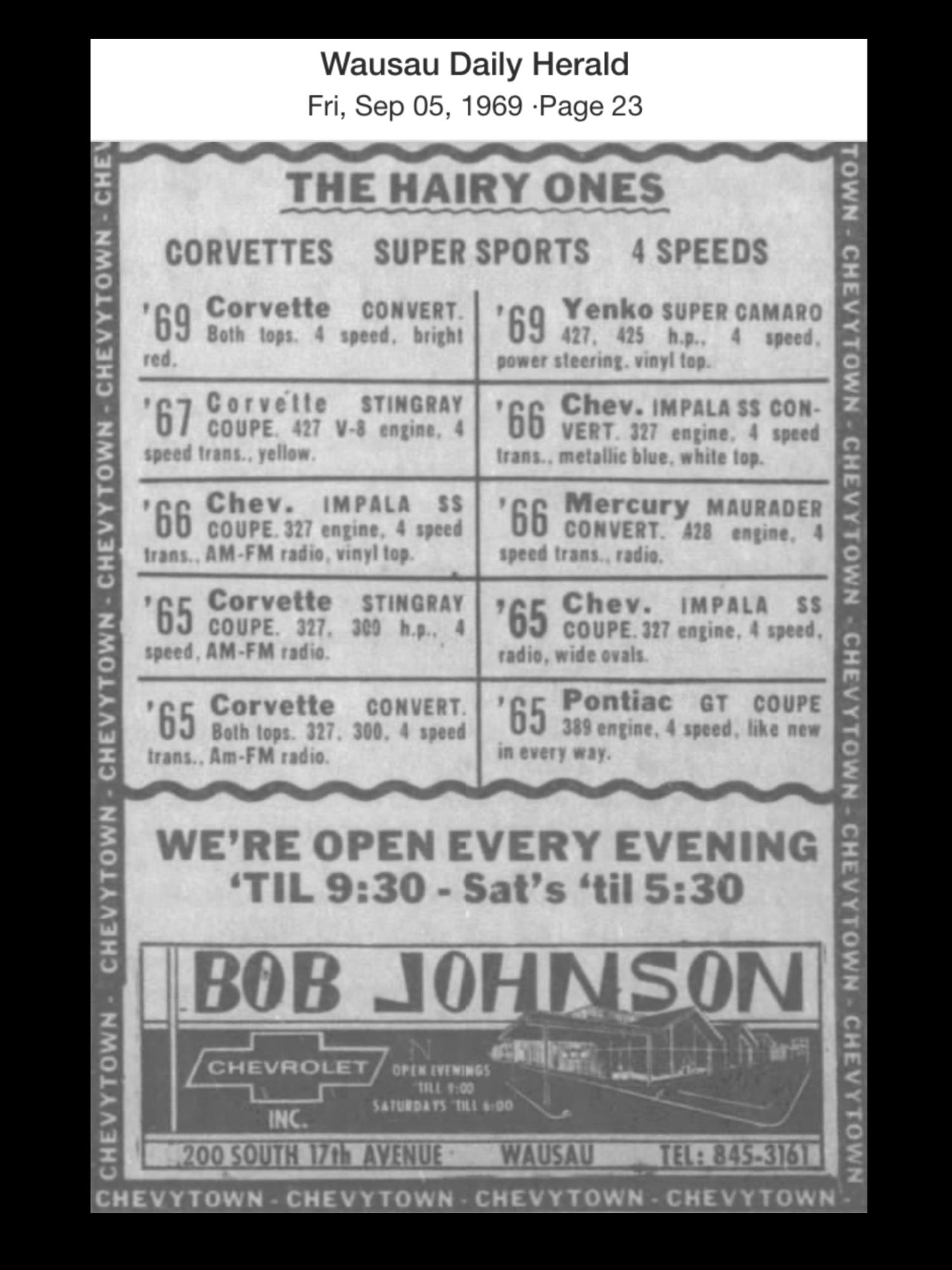 Neat car - sold new at Bob Johnson Chevrolet in Wausau, WI. NOM but the transmission is original.