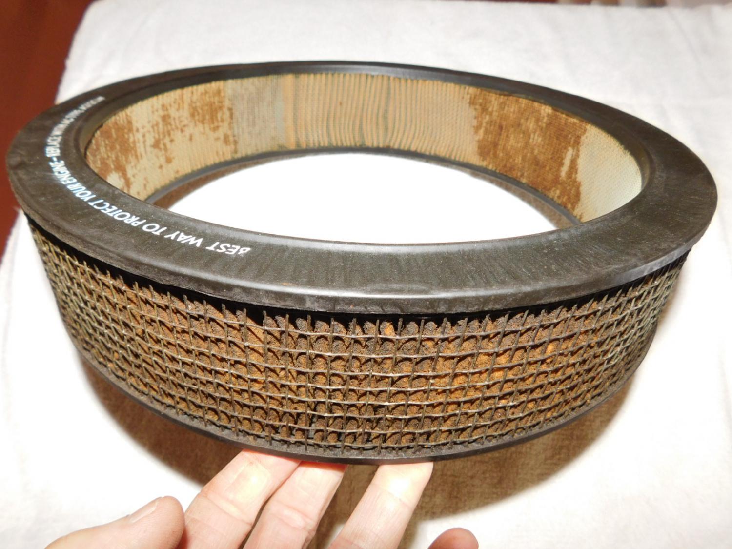 Also a early service replacement AC A212CW air filter. Stained and dirty, but a good square mesh with the full script "Best Way To Protect Your Engine - Replace With AC Type A212CW"