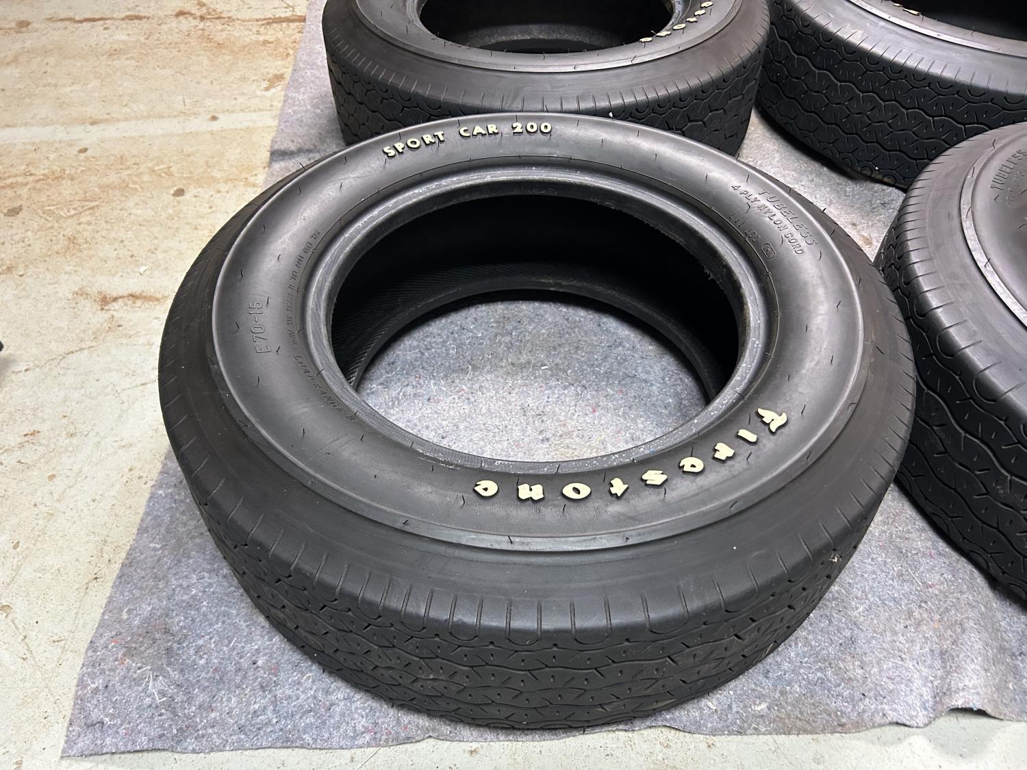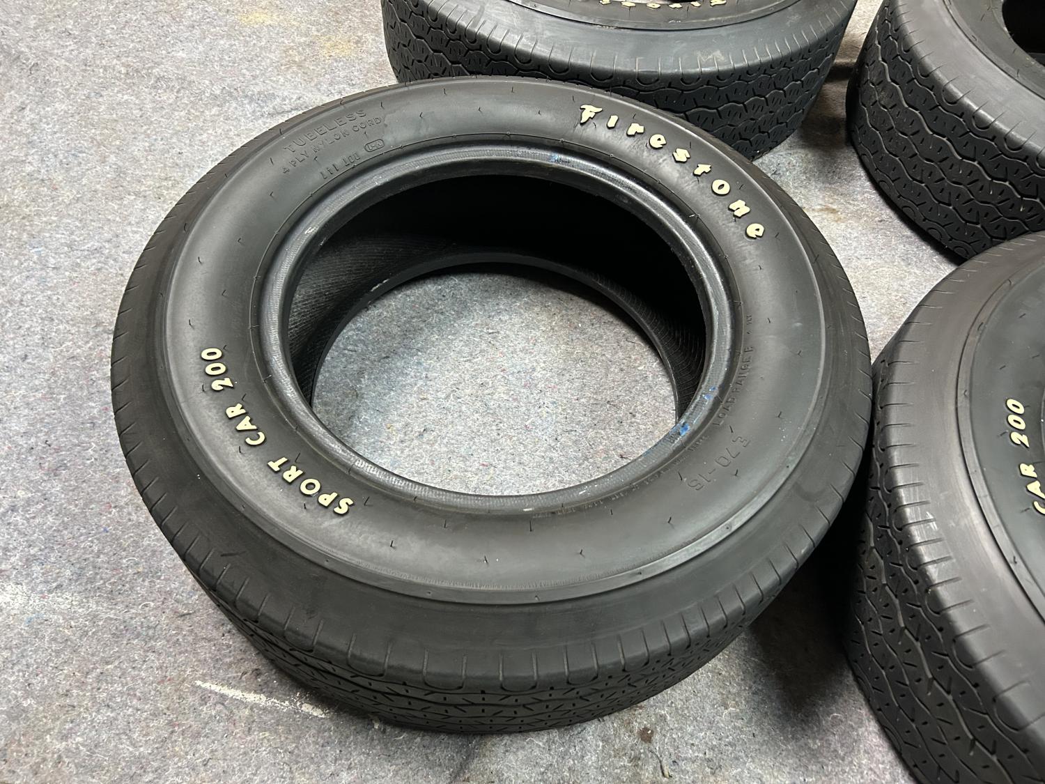Super nice set of reproduction Sport Car 200s with approximately 400 miles of use. These were on an extremely nice 69 Z/28 that I believe was part of the Lingenfelter collection. Looks like three of these are date coded 2006 and one is 2005. Never spent any time outside save the occasional warmup drive. The only blemish I can find is a sidewall scuff highlighted in a picture below. $750 for all four; these are currently $574 each from Coker. You won’t be disappointed.
