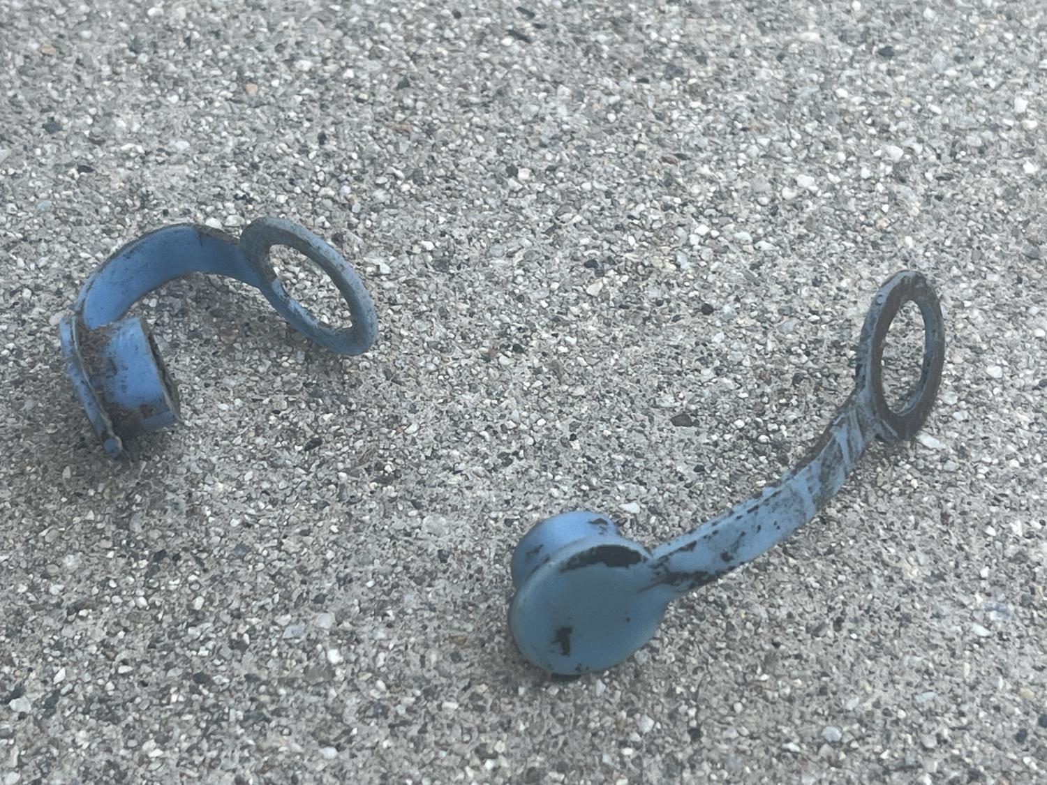 These are not easy to to find anymore. GM original bleeder caps that go on the front disc brake caliper bleeder screws. These are excellent used survivors with some slight wear, and one tiny crack on the cap end of one at the tab - both of the retainer ends are perfect - see many close up Photos below. They fit like they should and they are genuine assembly line General Motors pieces with the correct baby blue color. Nicest pair I've had in a while. Wiped very cursorily - I'm sure they'll clean up better too. I'm sure they're correct for other years as well, maybe all single piston calipers from 1969 to 1972 or later perhaps; not sure. Camaro Nova Malibu - anything with front discs, really. It's the details, not everyone will notice they're there, but you'll know. And I'll know. Cheers all, Anthony |