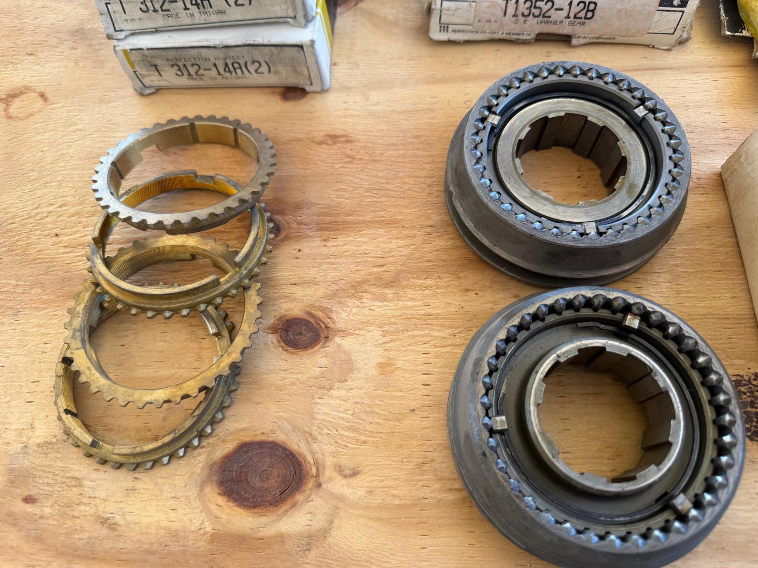 Selling some new and used Muncie slider assemblies. Most are complete new in box perfection brand. There are some just sleeves as shown. The 2 Mr. Gaskets are just the sleeve. There is one used set as shown complete. There are 8 boxes of new Syncros and some loose ones. This is great for someone who builds Muncie's. Asking 375 ppff for the bunch shipped to lower 48 USA. Thanks, Larry