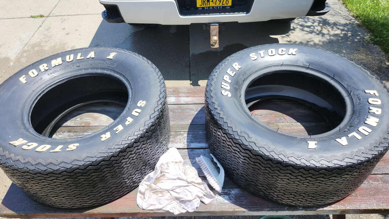 A pair of Formula 1 Super Stock L60-15s. Never driven on, supposedly mounted once. Nibs still on the sidewalls and tread .Still has some of the protective blue coating on the letters and bead that can bee seen in the pictures. One scuff on sidewall that you can barely feel with your finger (im not going to try to clean that up.). Perfect for your Day 2 car for shows or for MCACN. they are nice and pliable with absolutely no dry rot or cracks anywhere. personally I would have no fear of driving on these.