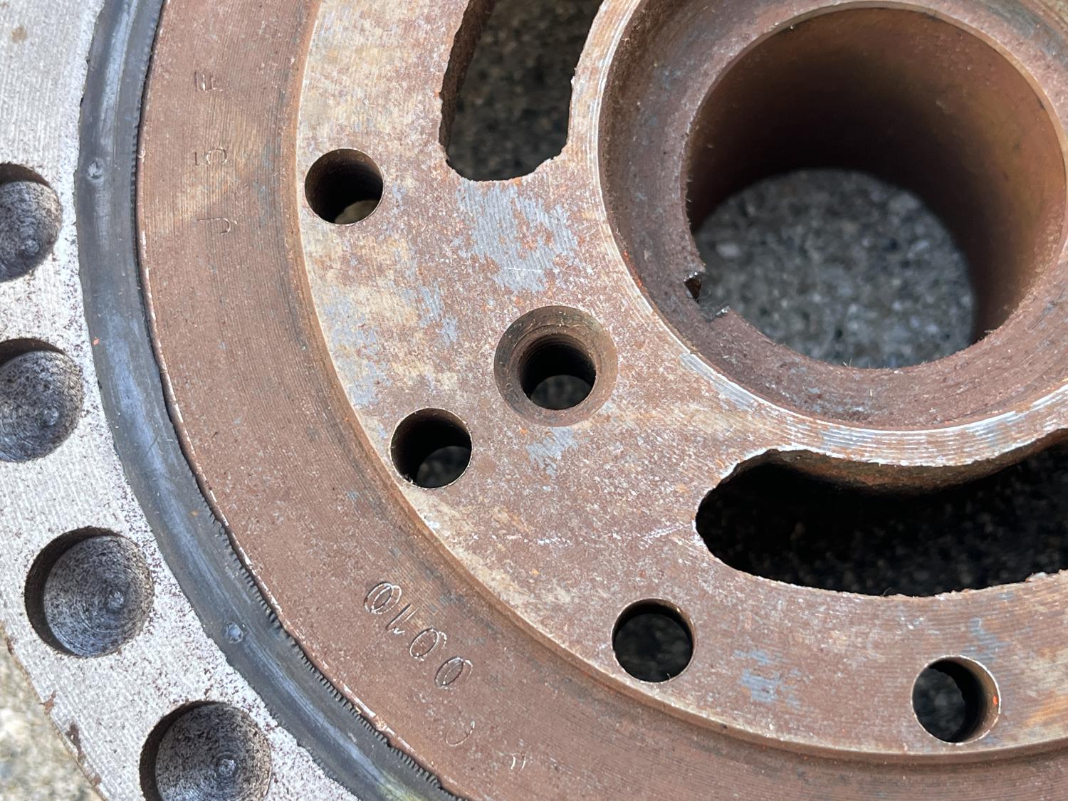 An NOS in the old GM box large diameter 8" balancer 3860010 cast 3870325 and I think another part number is 3879623 - it's (double) stamped 0010 as well. The keyway and the timing line mark are aligned. The box was untouched for more than 50 years, I just opened it today - it's dated 04-24-75 There's some flash oxidization / I hesitate to call it surface rust, but it should clean up easily. It's perfect of course functional wise, just needs paint. Rubber is good. SHP Special High Performance HiPo for Corvettes Camaros Chevelles Novas L78 L72 L89 ZL1 L88 396 427 Lots of photos below for the whole picture. This is a genuine new fifty year old part that is original and has the look and function you want. Cheers all, Anthony Last edited by AnthonyS; 08-12-2025 at 12:26 AM. Reason: fix a blunder Freddie pointed out. |