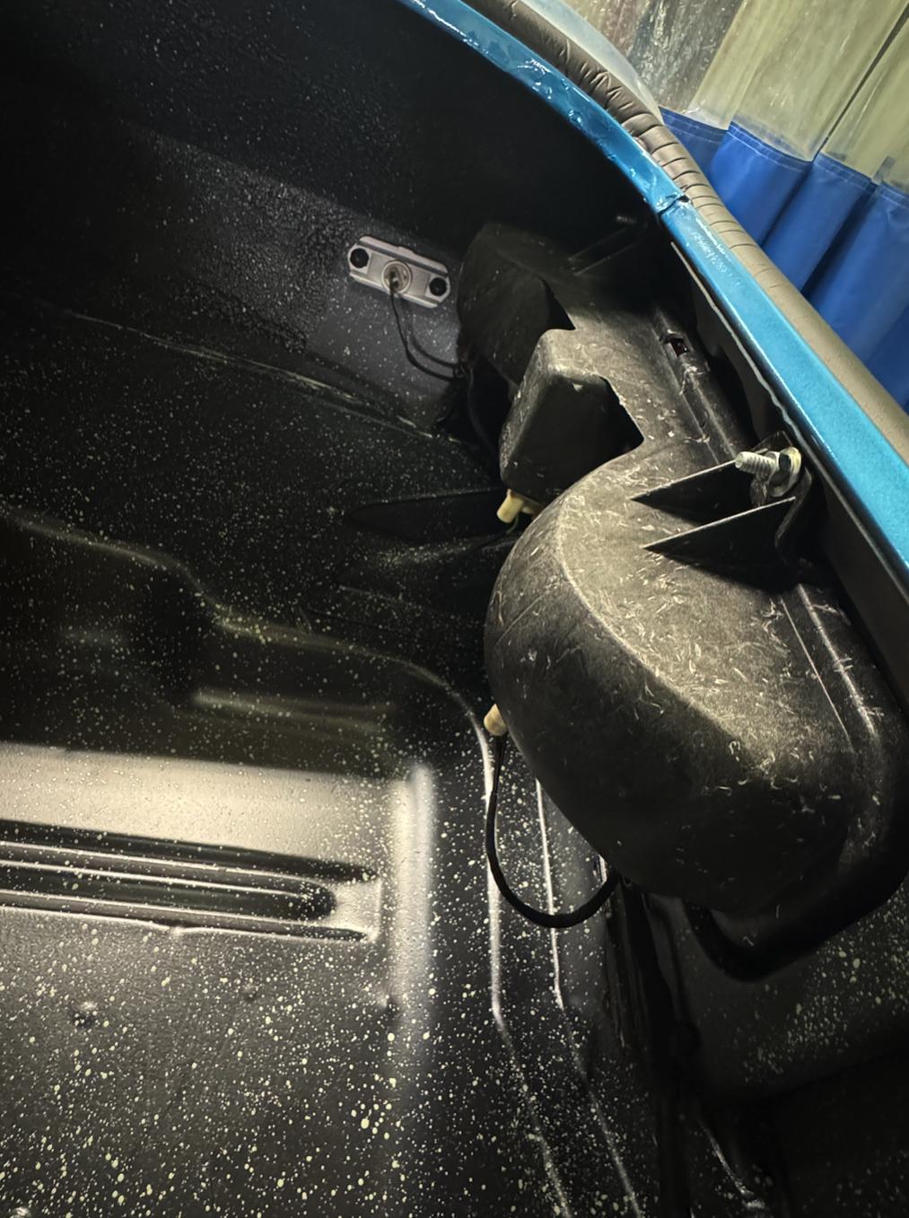 Subframe mated with body and original interior nearly completely reinstalled.