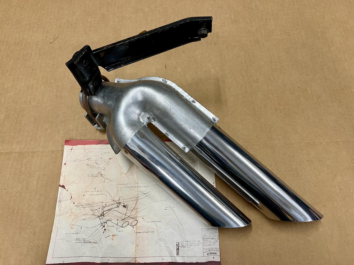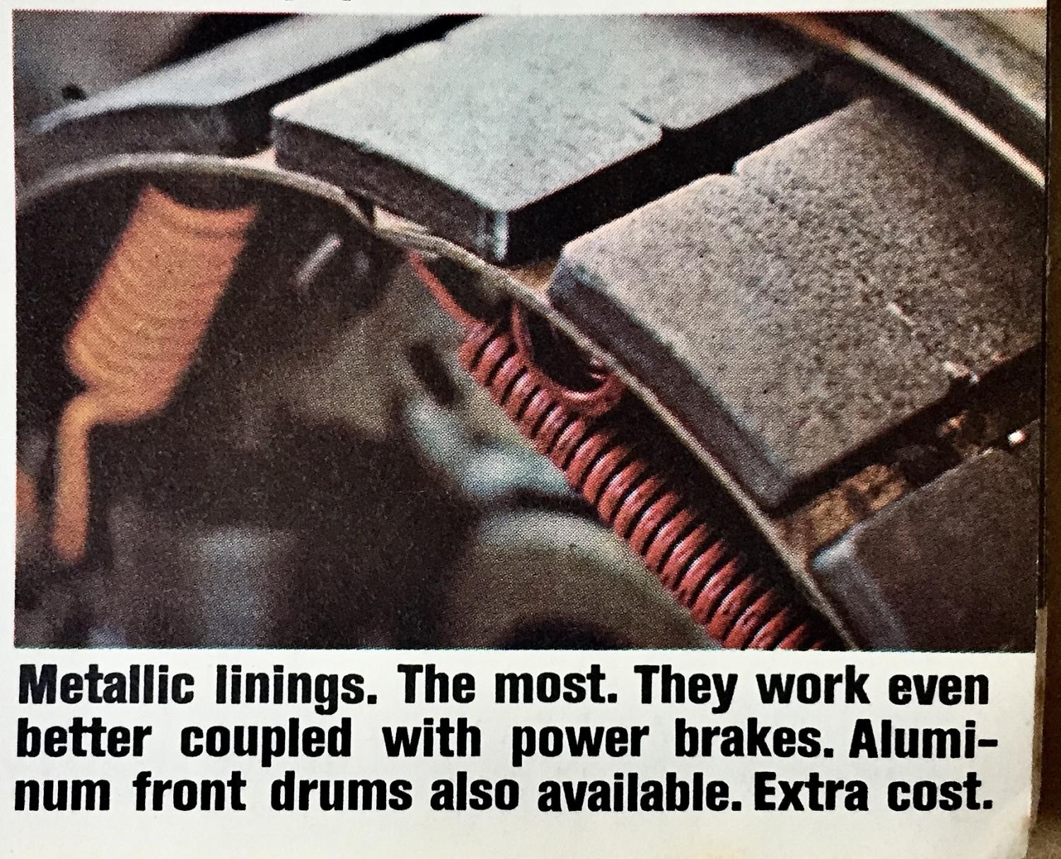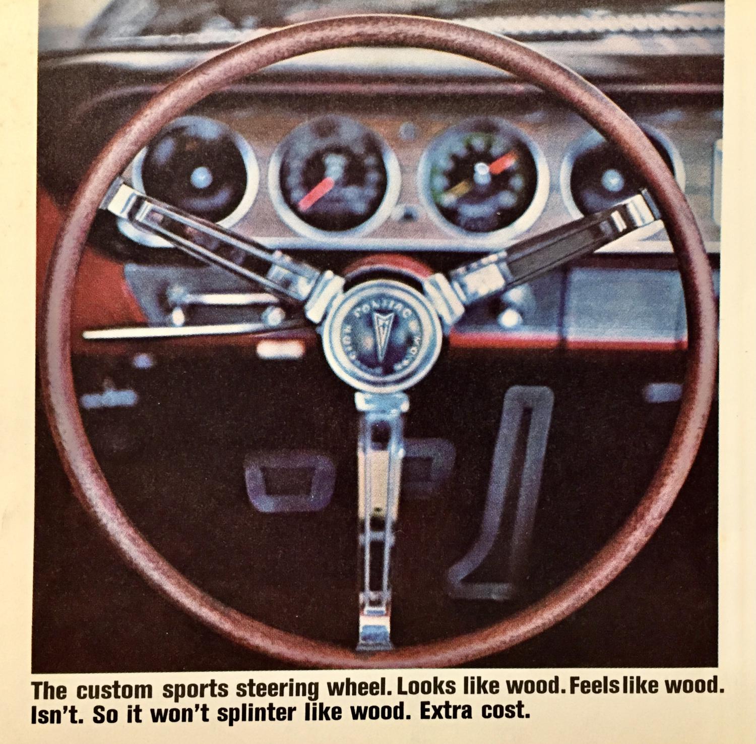 Options. Custom Sports Steering Wheel. Check out those 3 pedals. Looks like a possible tilt column. First design or maybe a Cal Custom or other 60’s type accessories for the photo shoot. 1965 Rally Wheel with the correct full polished stainless center dish with the black painted ring on the chrome cone, one year only. A set of NOS splitters in storage.