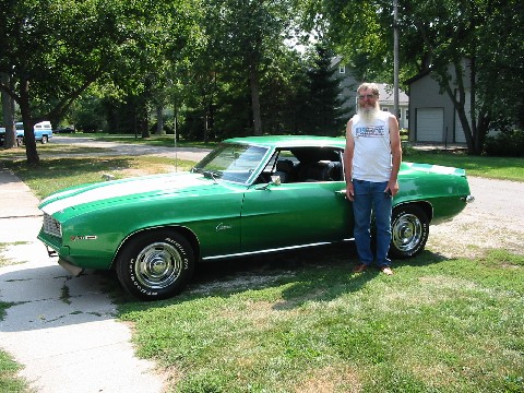 Back in July of 1969 a guy walks into a small town Chevrolet dealer to buy a car right of the showroom floor. The self-proclaimed, ìFord man,î says he fell in love with the car and had to have it. This would be the only Chevy he would own in his life. His wife did most of the driving. A fan of manual shift she uses it to go to school and for an occasional street race. The gentleman also does some street racing with the car. He had a friend at work who had a brand new 69 Camaro SS 396 with 375 horsepower. They agree test out their cars. Here is the quote from the race. ìI could wind the car to 8 grand in 1st and 2nd gear. By the time I got to 3rd I did need to rev it high anymore. I could beat the 375 horse car to 120mph.î Keeping the car for just over a year, he had to sell it to fund his wifeís education. 30 some years and several owners later the car ends up in my hands. Yep, this is some of the info I got today from the first owner of my Z/28. I have finally contacted him after 10 years. I took a Sunday drive to a small town southwest of DeKalb, Illinois to reunite the car with the first owner. He was thrilled to see the car in its current state I could see it was bringing back a lot of memories. I took him for a ride and he seemed to enjoy it. He said, ìOh yeah, that 4:10 really gets you up there quick.î Here is a picture of a guy and his old friend. [img]/ubbthreads/images/graemlins/flag.gif[/img]