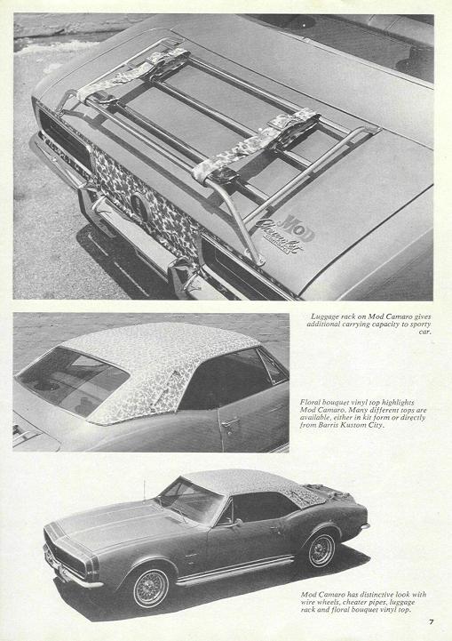 When the 67 Camaros were first shown to the public, one of the cars on display had some sort of checker board design on the vinyl top. Not as wild as this GB car.