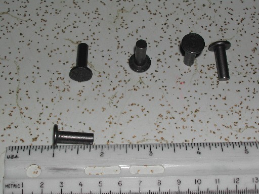 For sale original Ball Joint rivets for camaro-chevelle. 1/4" dia. 3/4" shank, 1/2" flat head as original. Not the round head repro rivets. $13.00 for a set of 10 (2 extra) shipping and handeling inc. If interested send me a PM or e-mail. I also can install them if interested.