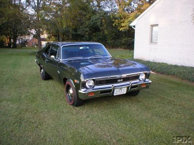 Hi Tom, I was hoping to hear from you. The "lots of L78 Novas" always caught my eye. Yes, the heater hose location is correct and power front discs are there and looking very original. I have studied many pics over the past week or so and I would have to say if someone "made" this car a big block they did it a long time ago. Careful inspection of the hardware on the heater core housing, radiator support, and engine mounts tells me the car hasn't recently been tampered with. I do want to research the radiator support further though. As I said in my earlier post, all I have to match it against are other pictures of BB supports. Sounds easy but pictures tend to be one dimensional and you can't always get the right angle you need. I could use 2 pieces of info. 1. A straight down shot of the top of the support showing the hole patterns for the center support and the flap and 2. Measurements for exactly how big the opening is for the radiator. I'm also concerned that the welded nuts for the SB radiator hold-down should not be there. On a positive note, the radiator is too small for the opening (I can put 3 fingers through the gap on the drivers side). Also, the passenger side has welded nuts for the Harrison flange mount and the driver's side has what appear to be holes for self-tapping bolts in the correct position for a flange mount radiator. Again, I don't know if this would be correct or not. The car looks great. It has a black vinyl top, dark blue paint, black interior, 4sp., Radial T/As on 5 spoke SS wheels. Very factory looking which is what I like. Exceptions to this are bolted on subframe connectors and old traction bars. I will post pics when I acquire the technology. I have read the FAQ section of this site and attachment directions all look Greek to me. I have posted plenty of scans on Ebay with no problem. i don't know what my problem is here. What the heck is Mozilla 4+? My computer is only 6 months old it should have all the bells and whistles I need. Tom, thanks for your interest in my Nova and any help you have to offer is greatly appreciated. By the way, how many is "Lots"?