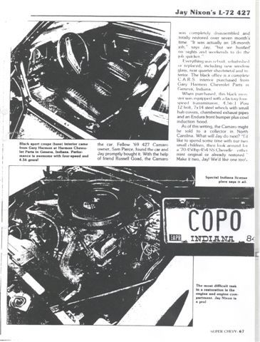 Seems to me that I recall this being a real COPO. Not much faking going on back then because they prices weren't through the roof. Besides, most people didn't even know what a COPO was back then. Up until about 5 years ago, people were still arguing about what COPO meant.