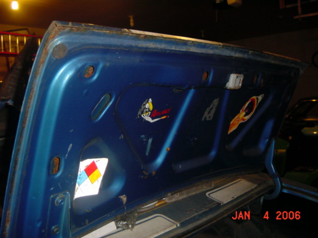 Here is a '67 decklid. Only had holes in teh underframe to mount the emblem, none for the spoiler.