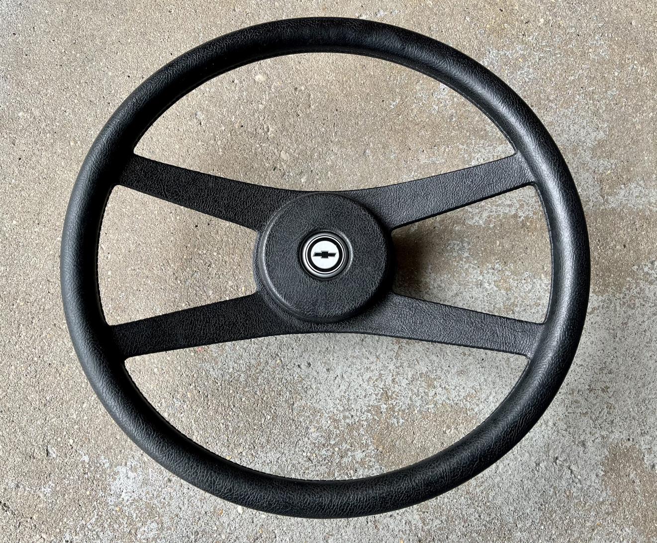 1971-1981 Chevelle Camaro Nova black 4 spoke sport steering wheel, RPO NK4. It is in mint condition with perfect grain all around, a very low mileage early take off. They are very hard to find in this condition. $225 plus shipping.