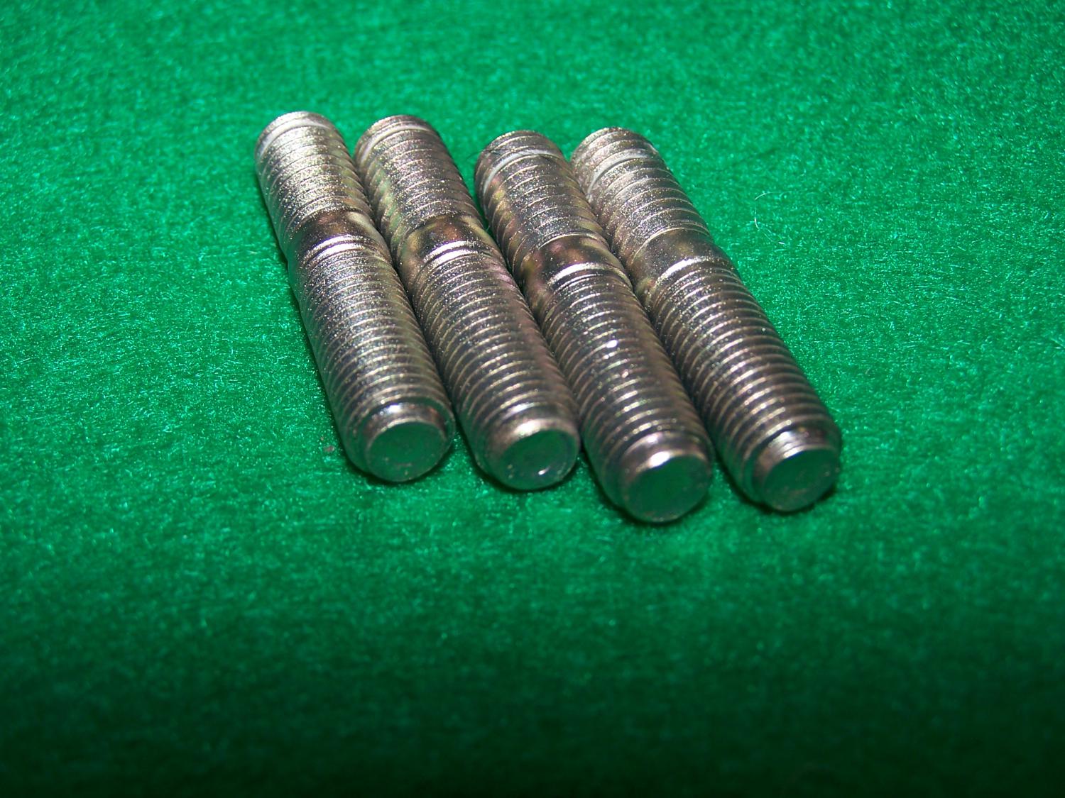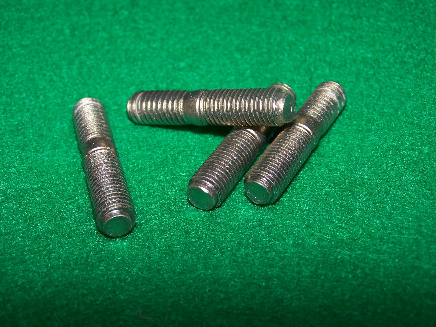 For Sale; Background, I removed my Original Studs from my 1968Z intake to send to a plater for refinishing only to have them LOST by the provider. So I reverse engineered the studs using a fine commercial starter stock. I machined (Lathe work) the Dog Point (Turned down Tip) as per Original samples then glass beaded and sent them off to a different zinc plater for ATSM B38 Zinc Type II yellow chromated, wire hung plating from the UNC end that installs into the Alum Intake female threaded hole and is hidden.