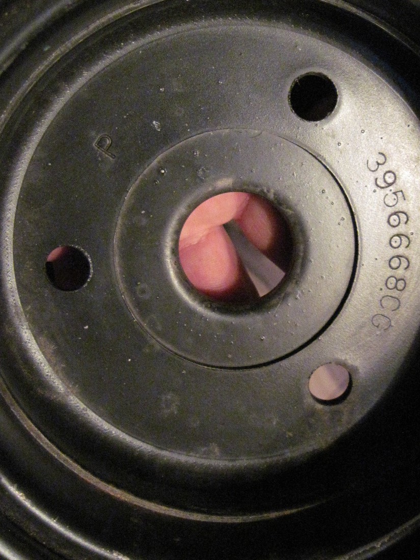 NOS never used original deep groove crank pulley. Straight not bent or beat up. Some spots of surface rust around one of the bolt hole and traveling upward. Nothing serious. Just pointing it out.Also in the pics.