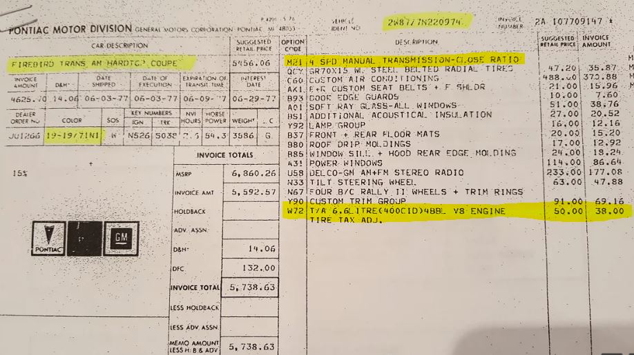 No more eBay time wasters this year, ugh.... Would like to move my very original 77 Trans Am, W72 400, 4Spd, orig paint, orig exhaust, orig interior, orig glass, and three of the original tires still hold air. Priced at $38,900 which I feel is a good number for this quality car, still has the factory driveshaft markings and paper tags on the springs and sway bars. Snowflake wheels and NOS Hood Decal come with it. Thanks