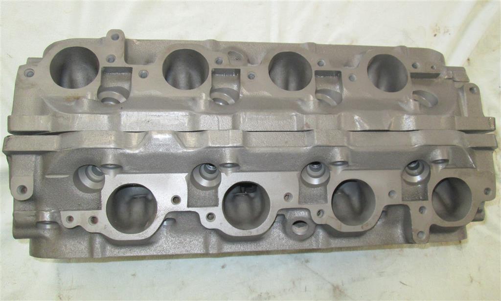 These heads are in very good original condition as shown. These just came out of a long time collection and have been in cool, dry storage for decades. Both are stamped Traco with the same job number of "524" as shown. The heads are in bare cast iron finish and look amazing. The only flaw I see is a small crack on a valve cover rail as shown which could be simply sealed, brazed, or welded. All ports and chambers look great. All threads are in good condition with no helicoils or threads inserts. The deck surfaces are very thick so they have not been milled to death. Finding an original matched pair of TRACO heads is unheard of, especially in this awesome condition.