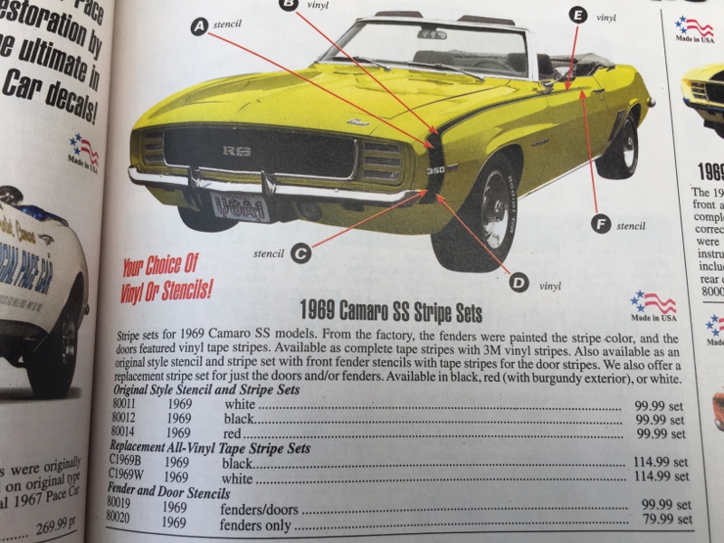 1969 Camaro D90 whte stripe repo kit - stencil and vinyl decal