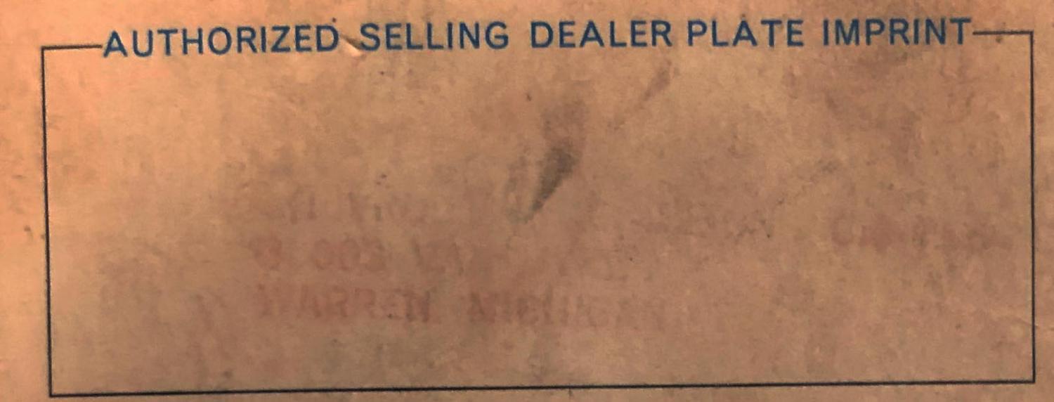 Now POP is an original has the motor code, engine, rear axle, sold to person's name but Red stamp of Dealer shows: GM Engineering at the same address. My understanding is that the Execs used the cars and then sent them to a local dealer to be sold, Yet dealer shows at same address. Ever hear of GM Engineering selling car outright to the public? POP attached very hard to read, only figured it out having the zone and code and address: 30003 VAN DYKE WARREN MI Build date of car was approx: June 27, 1969, POP sale date was: 7/2/69. If this person was an Exec or worked at the GM Plant, did they make a POP for a GM Employee? Thanks, Paul