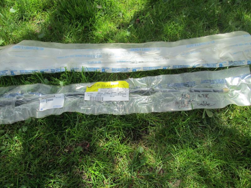 I have 2 NOS in gm packaging accelerator cables.Both can be used for either Holley or Quadrajet - #3972679 is correct for L34 and LS5 cars including chevelles and the #336969 is the correct service replacement for a L78 or LS6 car-check your application.
