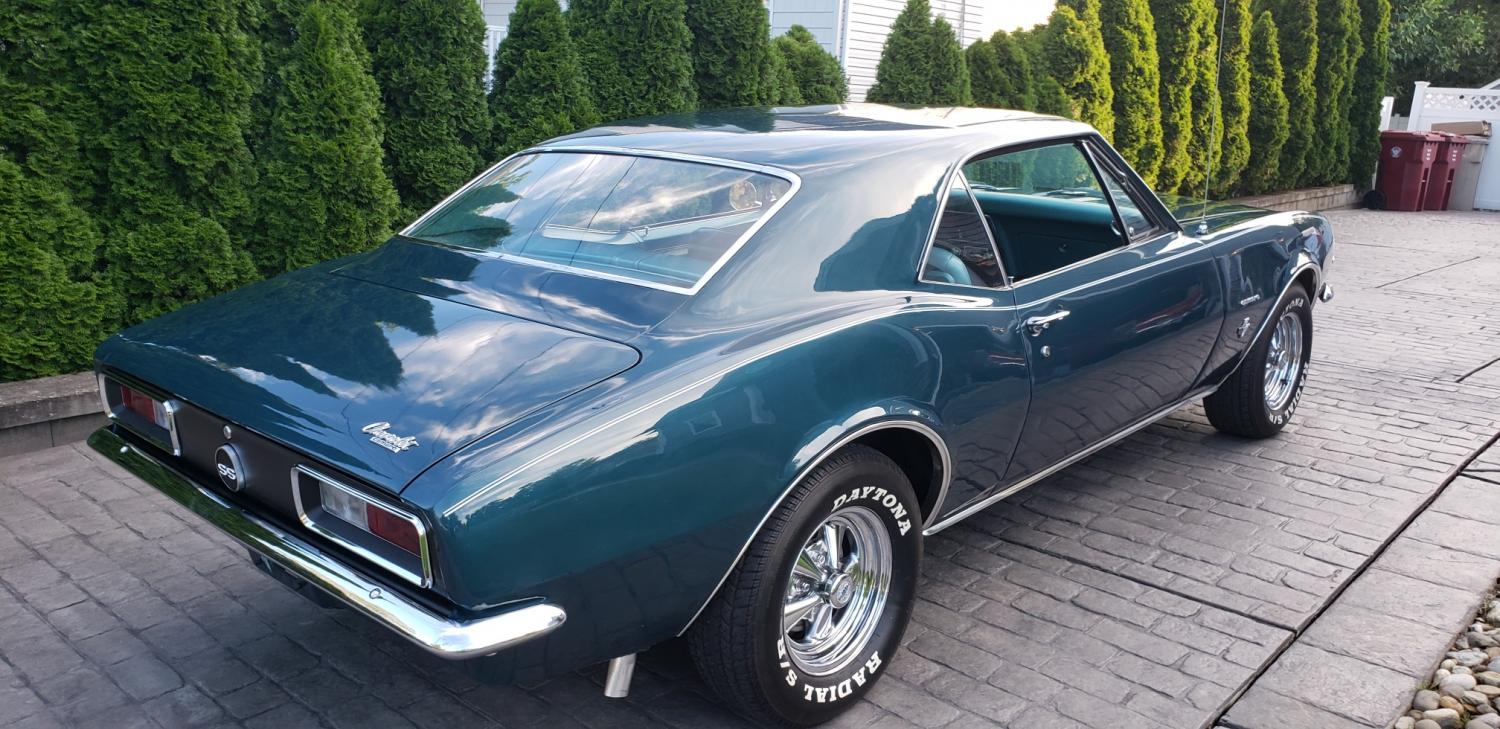 1967 Chevrolet Camaro SS tribute. Very rare Tahoe Turquoise with Aqua deluxe interior. All original 327/210hp automatic. Everything on this car works. Still has original weatherstrip in doors and windows as well as original jamb paint. Trunk still has most of its original splatter paint (1 small patch on trunk floor). Original spare with rediline and powder coated wheel. Original jack with original paint in place. I disassembled the engine bay and detailed it as shown. All new and rebuilt carb, , fuel pump, factory dual exhaust. Still retains original starter, distributor with hold down, radiator, starter, wiper motor with factory applied date ink stamp. and factory installed ribbed hoses. Still has original molded hood liner and wiper blades with wind deflectors. I own a powder coating shop, so everything under the hood is powder coated and restored perfectly. Brand new radiator support , all hoses and fluids. Acid free OEM style battery installed. Still has the recall motor mount hold down cable as installed. I purchased the car as a survivor from 80 year old owner who has had it since 1974. (garaged). Beautiful original floors with factory undercoat. It was painted in the early 90's with base clear. Looks great, it has had quarters put on back then as well. Some minor nicks and touch ups but super clean and straight. I added the vinyl nose stripe and painted pinstripe to the car. The emblems are double faced taped on so they don't hurt the originality. Someone changed the radio back in the day but did not cut the dash, and it does work. Car needs nothing, great reliable cruiser. I was going to do an LS conversion but its too nice to modify. 14" craigers and white letter tires are brand new. Hard to find a nice clean first gen with this great color combo. PM for more pics $24,500