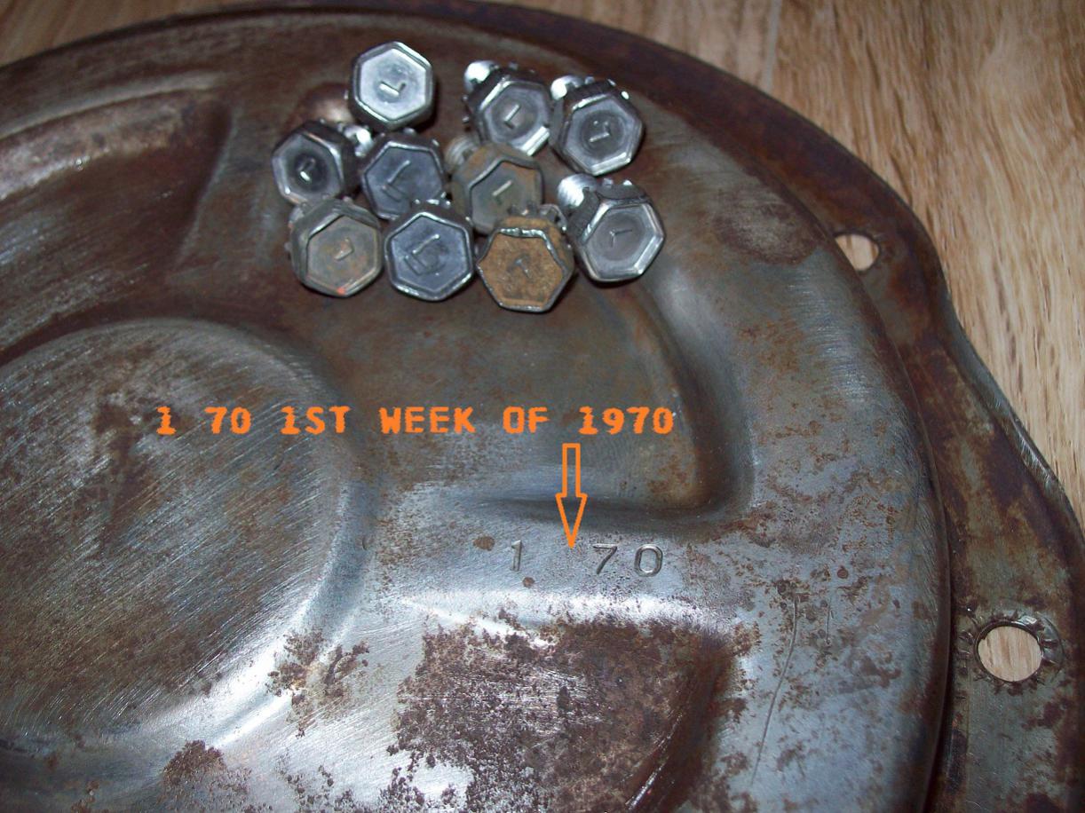 Angled AOR Tab Assembly Line 8" Timing Cover for the 454 LS5 LS6. A fantastic date code for many builds with 1 70 (1st week of 1970 which is January 1 1970 and forward), I also have the complete set of 12 Bolts that come with this cover including the very hard to Find Two "A" head marked bottom bolts that attaches to the Oil Pan. The other 10 Bolts are a matched set of "L" marked heads.